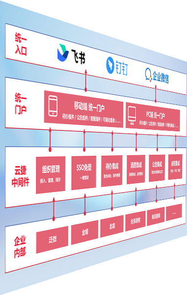 对协作平台提供支持服务,,,支持企业应用与协作平台对接,,,,包含组织同步、、消息集成、、、、待办集成等。。。。支持目前主流的协作平台:钉钉、、、、企微和飞书。。。。