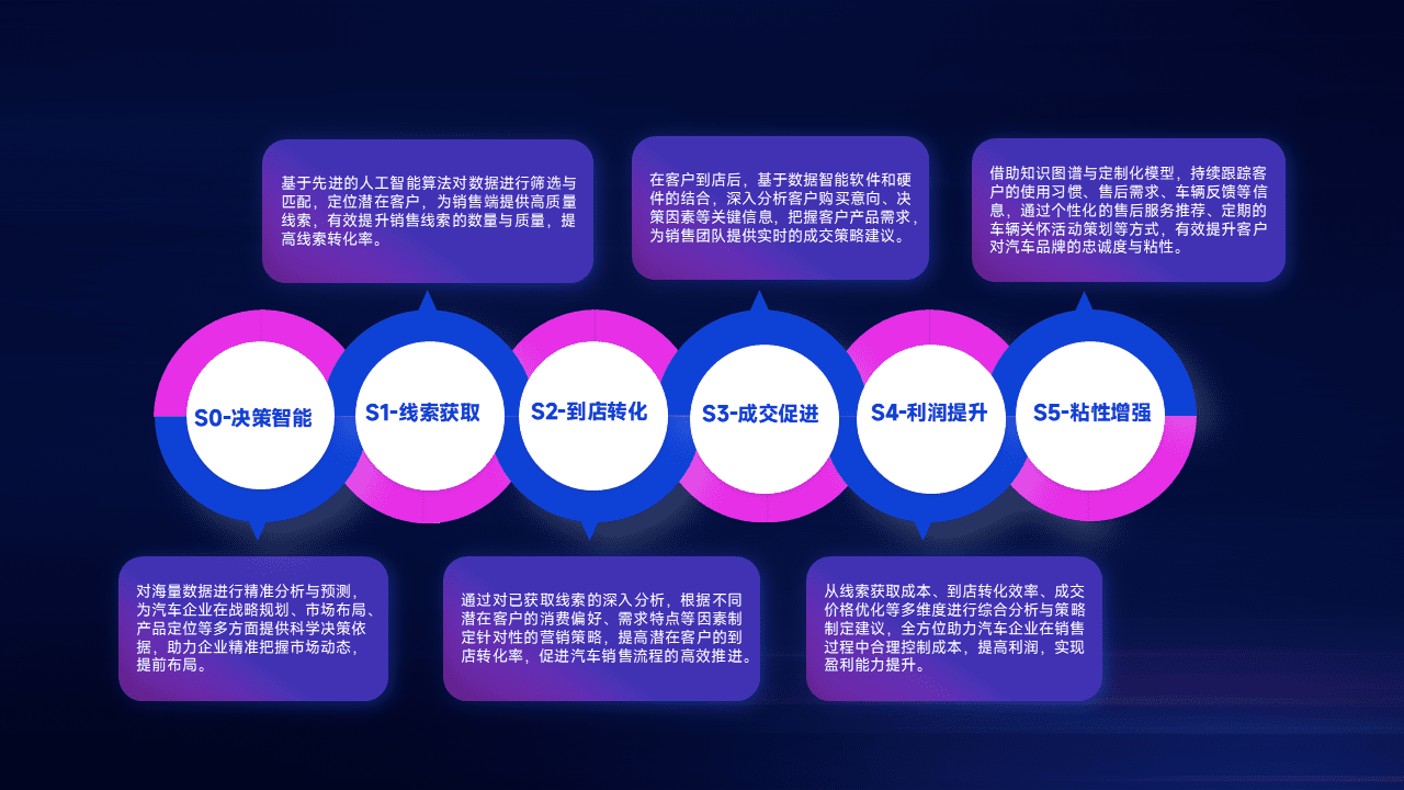 通过拓宽潜在客户来源、、、优化线索分配并提高到店转化率,,,,以增强销售效率。。。。同时,,,,利用线索数据不断优化分析模型,,有效提升转化率,,扩大营销影响力。。。